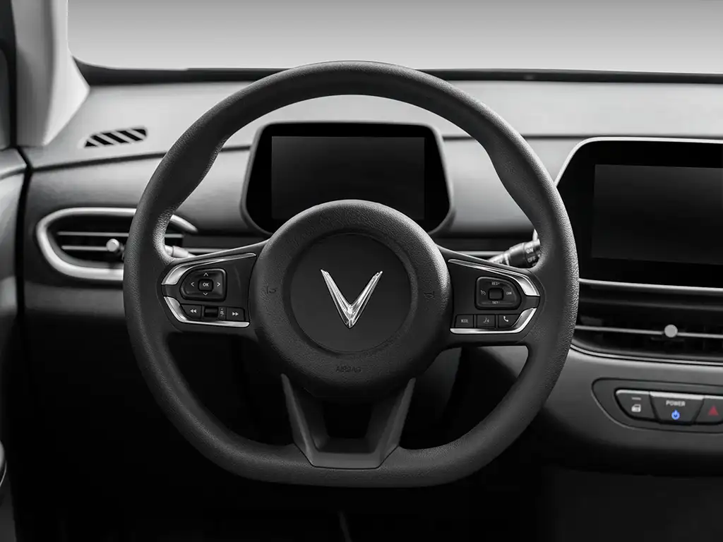 Khoang lái VinFast VF5 được thiết kế theo phong cách tối giản, hiện đại với hai màn hình tích hợp trên bảng táp-lô, giảm thiểu tối đa các nút bấm vật lý, mang lại trải nghiệm sử dụng trực quan và tinh tế. Vô lăng 3 chấu D-Cut thể thao có thể điều chỉnh 2 hướng, tích hợp đầy đủ các nút chức năng như điều khiển Menu, âm lượng, đàm thoại rảnh tay và Cruise Control, vừa tiện nghi vừa đậm chất thể thao.