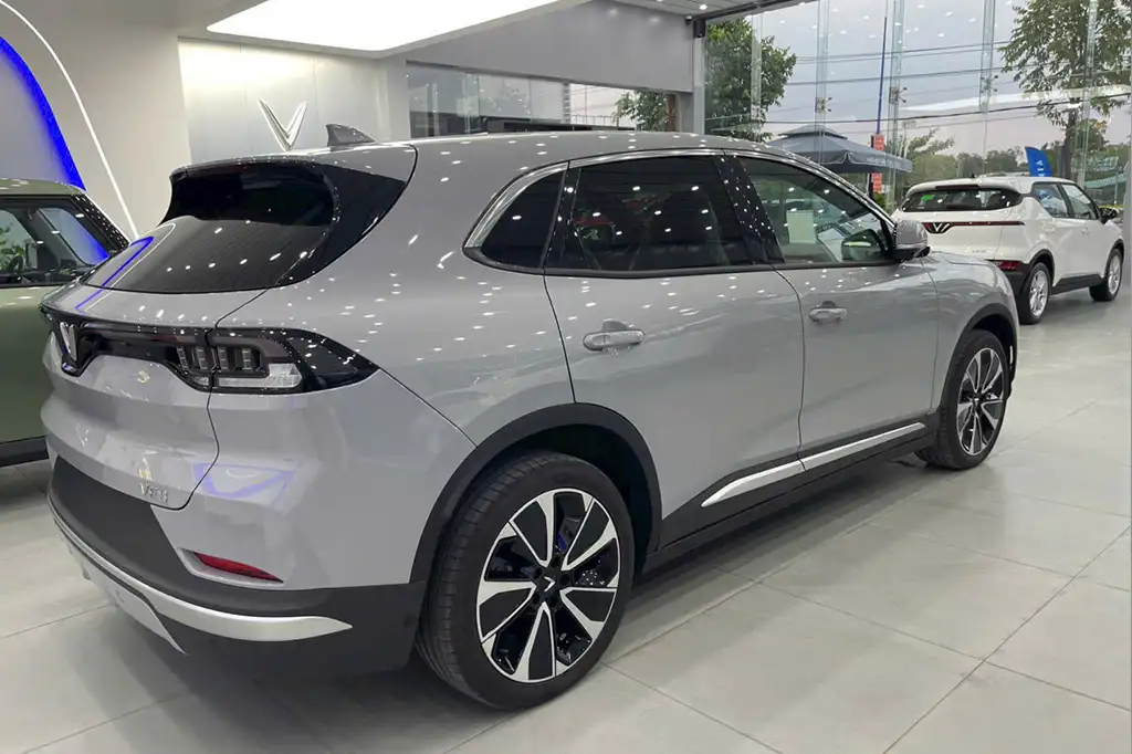VinFast VF 8 có kích thước 4.750mm x 1.900mm x 1.660mm, thiết kế cân đối, đường gân dập nổi tạo sự cứng cáp. Thanh giá nóc, ốp bảo vệ thân xe màu đen, mâm 21 inch 5 chấu, gương chiếu hậu chỉnh điện, camera 360. Nẹp mạ crom trên kính và ốp cửa tăng sự sang trọng.